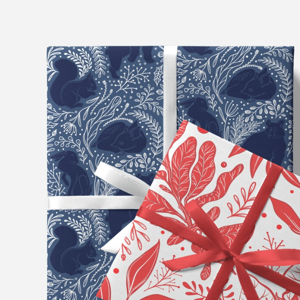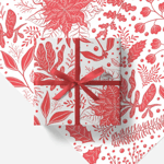 Compostable Wrapping Paper • Double-Sided Biodegradable & Recyclable Gift Wrap • Eco-Friendly Red and Blue Floral Pattern